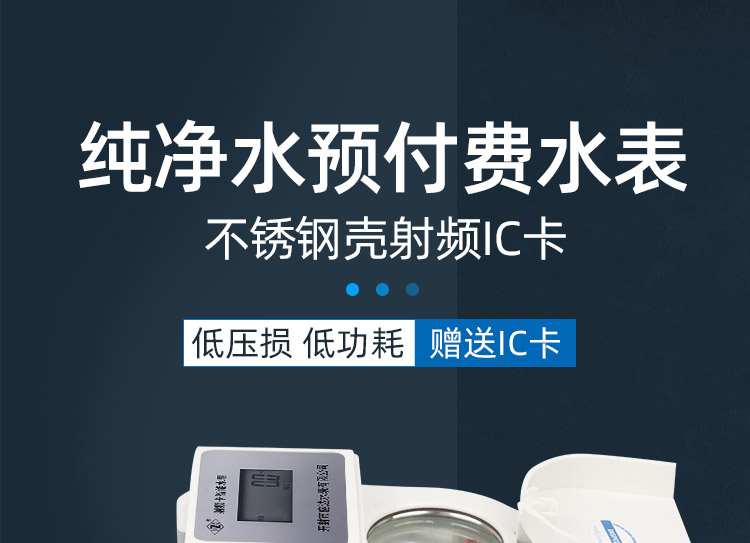 不銹鋼純凈水智能IC卡表是按照《封閉式管道中水流量的測量飲用冷水水表》《lc卡冷水水表》在成熟可靠的機械式水表基礎上加裝電子模塊,對用水量進行計量顯示,并按照約定對用水量自動進行控制自動完成階梯水價的水費計算。